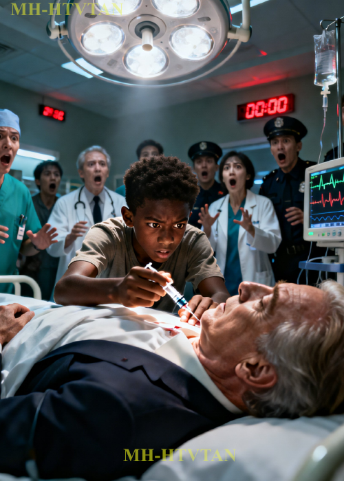 A desperate shout came from inside the suite, cutting through their conversation. He’s crashing, heart rate dropping below 40. Get the crash card in here now. The alarm screamed even louder, the sound of death approaching rapidly. Hayes looked at the memo in his hands, then at the dying billionaire visible through the window, then at the boy he had dismissed just seconds ago as irrelevant.