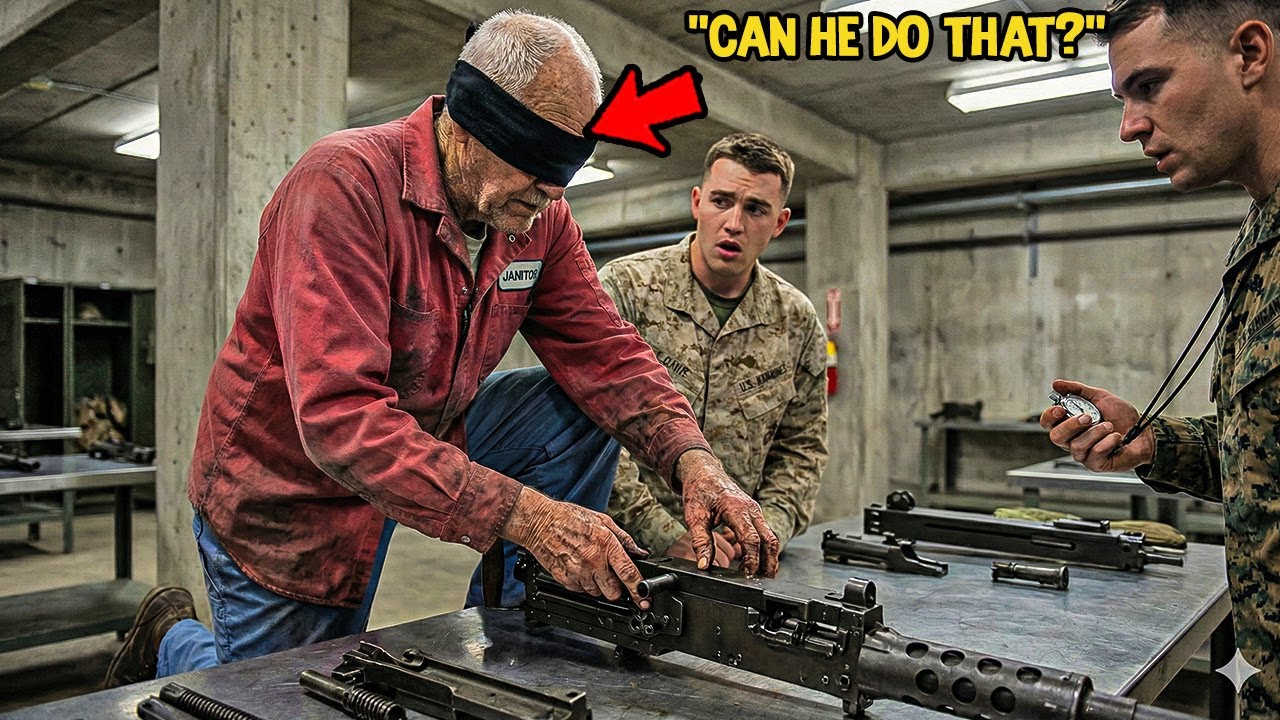 The room was absolutely silent. 45 seconds. The passing grade was 60. The instructor standard was 50. Thomas had done it in 45. Blindfolded, Thomas reached up and untied the bandana. He blinked against the harsh fluorescent lights, the confused old janitor mask slipping back into place for a moment, but his eyes remained sharp. He looked at the weapon.