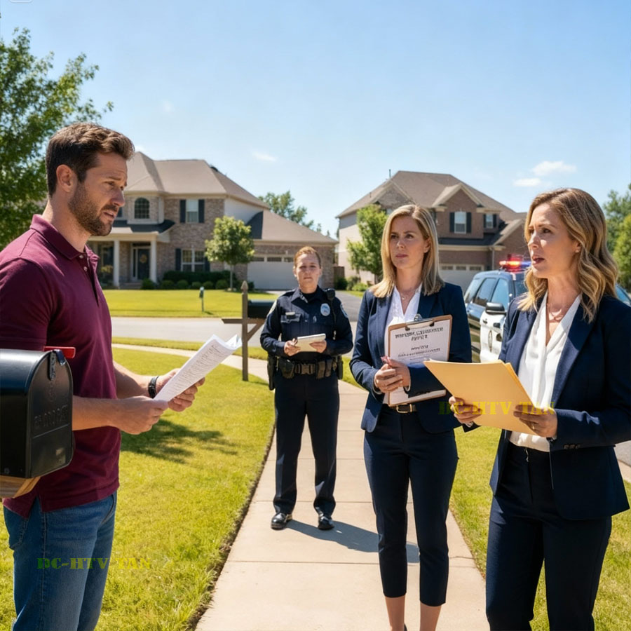 That’s exactly where this starts. I was tightening the last screw on my new mailbox, something I’d put off for weeks when I saw them. Three figures marching in step across the street, looking like they were about to enforce a no fun law. Mara Green at the front sun visor and clipboard gripped so tight you’d think she was holding national secrets not neighbor complaints.