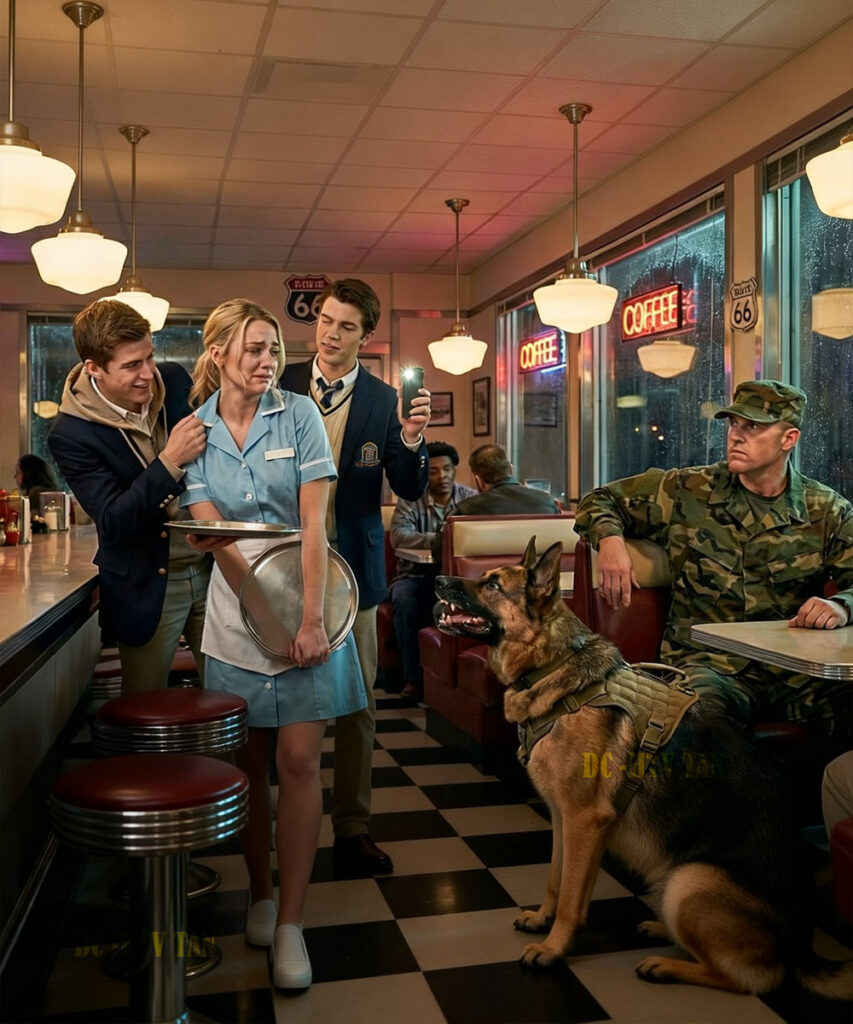 The diner got quiet the moment the rich kid started laughing. One of them leaned back in the booth, smirking, and snapped his fingers at the waitress like she was a dog. Move faster, The whole table burst out laughing. Then one of them grabbed her apron, yanked her close, and his friend lifted his phone, recording her face as she tried not to cry.
