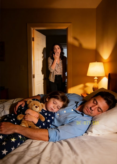 Emily shifted in her sleep, unconsciously pushed toward the edge of the mattress by the added weight and presence. Her small face frowned, disturbed but not awake, her body automatically making room for the intruder it sensed but didn’t recognize.