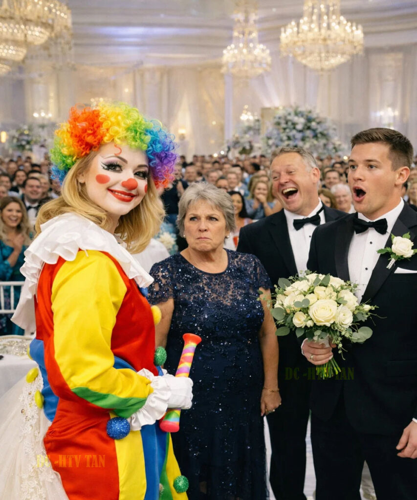 Emma, what long story? Just walk with me. Please trust me. He looked at my face, saw my determination, nodded. Okay, let’s do this. The doors opened, the music changed to the bridal march, and I stepped into view. The gasps were immediate, audible, shocked. I walked down the aisle, head high, smiling, in a clown costume with perfect hair and makeup, holding a bouquet of white roses. I saw Patricia in the front row.