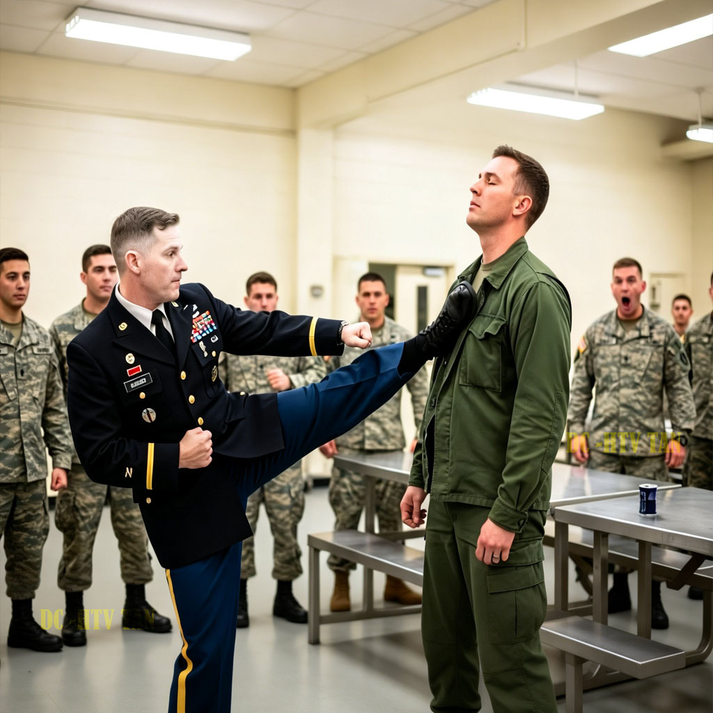 He didn’t cry out. He simply absorbed the blow like it was nothing, like he’d taken worse in places these officers couldn’t pronounce. And when he slowly rose to his feet, every soldier in that cafeteria felt the temperature drop. They had no idea they’d just attacked a ghost. A legend. A man who’ buried more enemies than they’d ever meet.