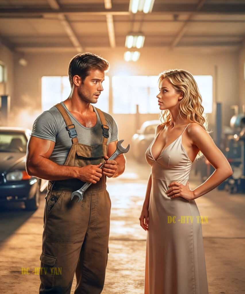 Daniel’s hand stilled. The voice was female, young, and carried an odd mixture of nervousness and determination that made him finally look up. She stood just inside the doorway, backlit by the street lights outside, seeming uncertain whether to step further into the garage. Mid20s, maybe.