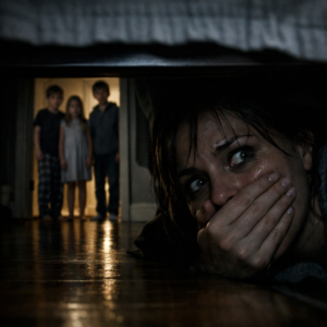 They were seated in a narrow booth near the back, vinyl cracked, heater vent broken, restroom door slamming every few minutes like punctuation in an unwanted sentence, and when the waitress, a woman named Janine with tired eyes that had seen too many nights like this, asked about drinks, Claire ordered water before the kids could dream too loudly.