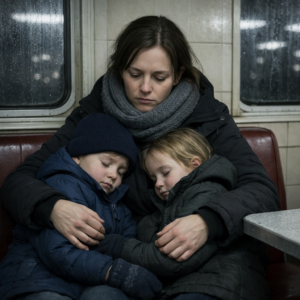 On Christmas Eve, just as the city’s cold tightened its grip and the streets around the diner glistened with frozen slush, Emily Harper stood outside a small all-night eatery called Lou’s Grill with her shoulders hunched and her breath fogging the air, clutching a wrinkled twenty-dollar bill that represented every remaining dollar she owned. Her twins, Noah and Lily, pressed close to her sides, their thin coats no match for the wind that sliced through fabric and skin alike, and Noah had pulled thick wool socks over his small hands because they no longer owned gloves.