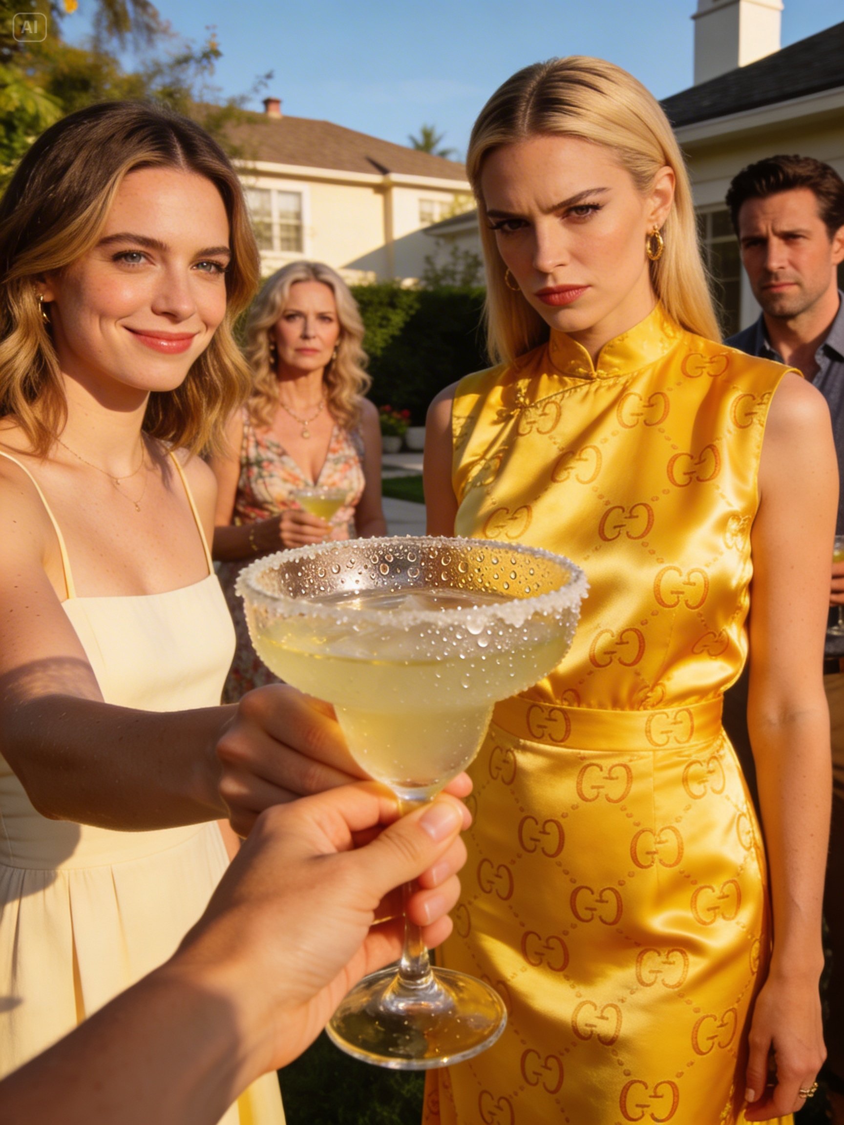 I walked confidently over to the outdoor bar. I picked up the glass, feeling the cold condensation against my palm. Just then, my sister-in-law Brittany strutted over in her $3,000 Gucci dress, demanding a drink, unaware of the poison her mother dropped into the tequila. It was time to play my part in their game.